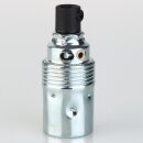 E14 Lampenfassung Metall verchromt mit Glattmantel und Zugentlastung Kunststoff schwarz