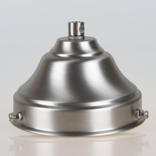 Dieser Lampenschirm Glashalter 110x65mm aus Messing in edelstahloptik ist ideal für Lampengläser und alte Industrie Lampenschirme mit Kragen. 3 Rändelschrauben sorgen für optimalen Halt und sind ein absoluter Hingucker. Der Halter kann mit einer E14 oder E27 Lampen-Fassung kombiniert werden. Für Fragen oder Lampenbau Tipps können Sie uns gerne per Mail oder Telefon kontaktieren.