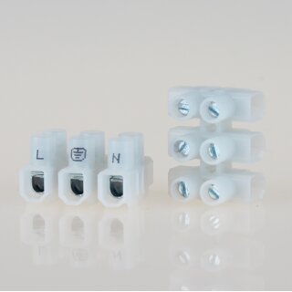 Lüsterklemme Mini transparent 3-polig bis 1,5mm² mit Beschriftung (L+Erde+N) 18x22x14mm