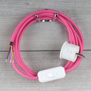Textilkabel Pink 3-adrig mit Schnurschalter und Schutzkontakt-Stecker Weiß Anschlussleitung 2-5m
