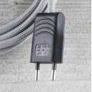 Textilkabel Grau 2-adrig mit Euro-Flachstecker Anschlussleitung Zuleitung 1-5 Meter