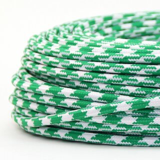 Textilkabel Grün-Weiß Hahnenkamm Muster 3-adrig, 3x0,75mm² Schlauchleitung